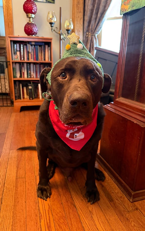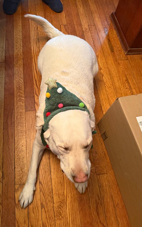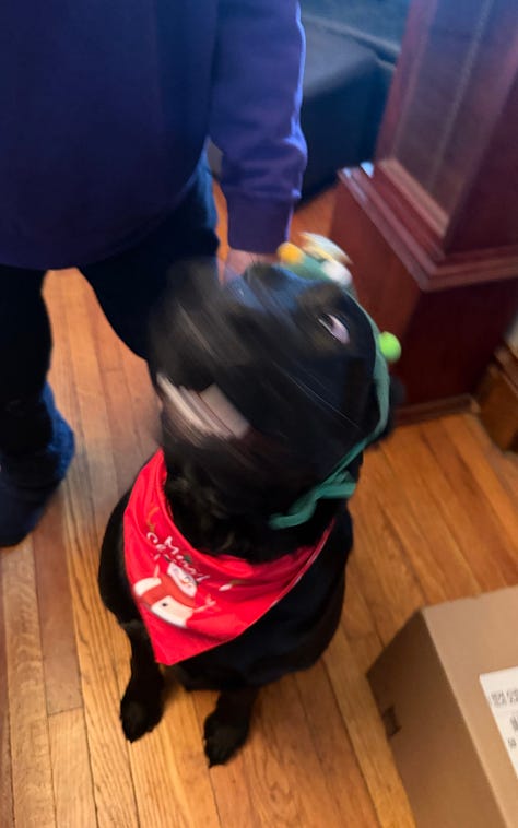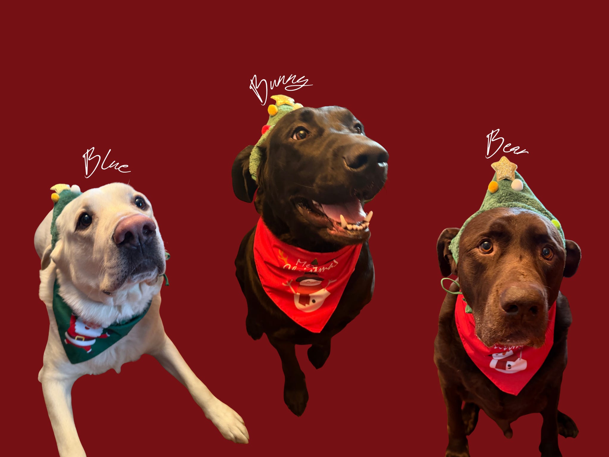 And we did dress the dogs up for our Christmas card, so enjoy the Canva-designed final product and a few of the funnier outtakes!